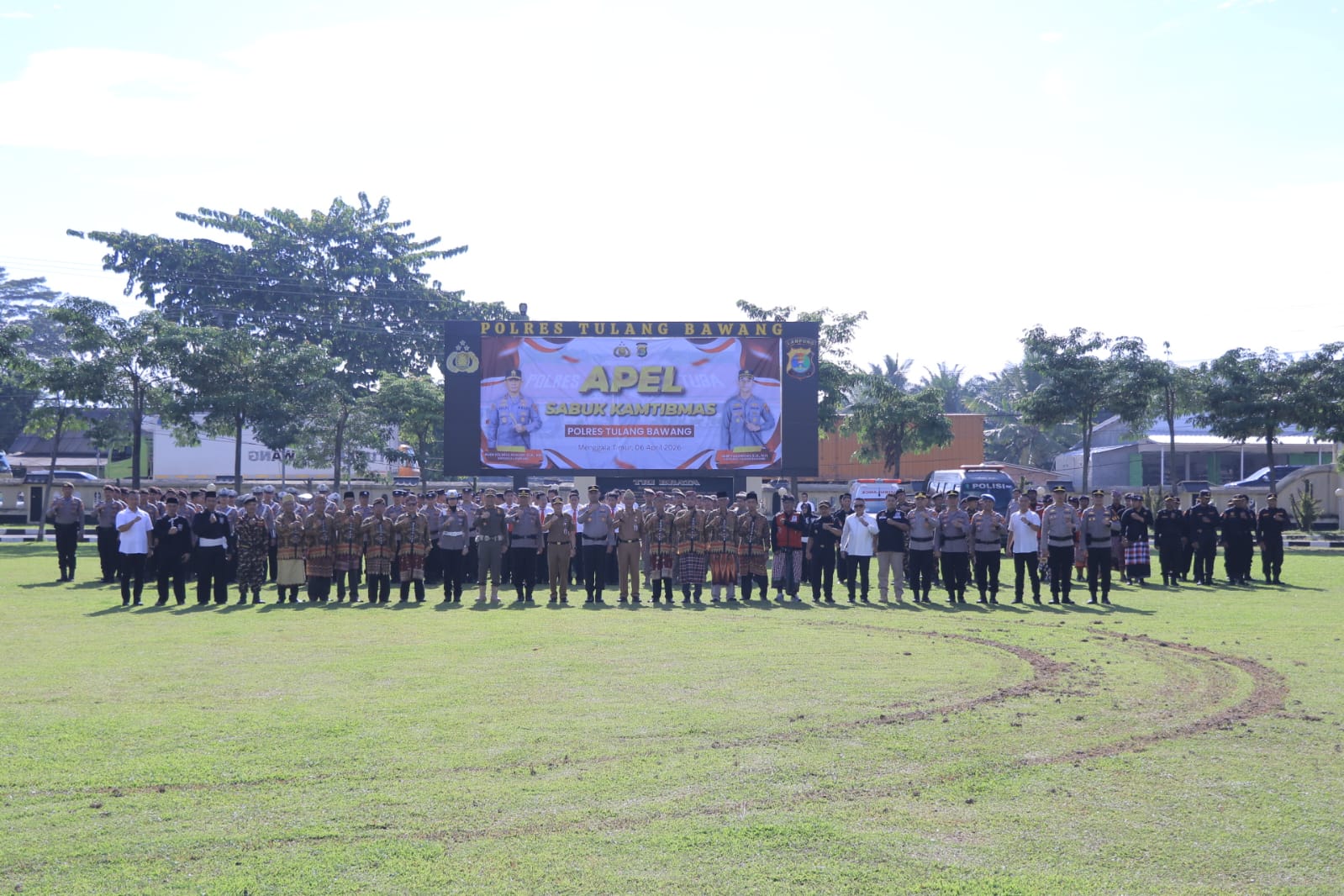 TULANGBAWAN,FORRAKYAT.CO – Suasana khidmat namun penuh semangat menyelimuti Lapangan Polres Tulang Bawang, Senin (06/04/2026) pagi. Ribuan personel gabungan dari unsur kepolisian, pemerintah daerah, hingga ormas dan tokoh masyarakat berbaris rapi dalam momentum besar Apel Sabuk Kamtibmas.