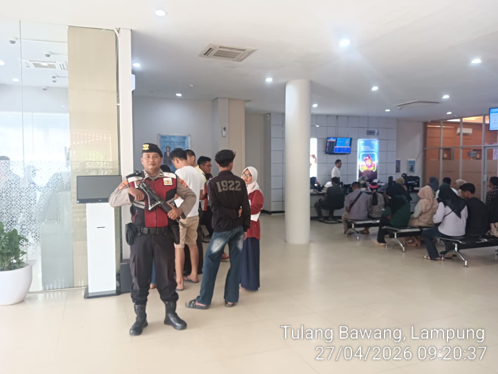 Tulangbawang,ForRakyat.co– Pemandangan luar biasa tersaji di koridor ekonomi Kabupaten Tulang Bawang pada Senin pagi (27/04/2026). Bak benteng berjalan yang tak tertembus, personel Unit Pamobvit Sat Samapta Polres Tulang Bawang melakukan mobilisasi besar-besaran untuk memastikan seluruh sektor perbankan berada dalam perlindungan mutlak negara.